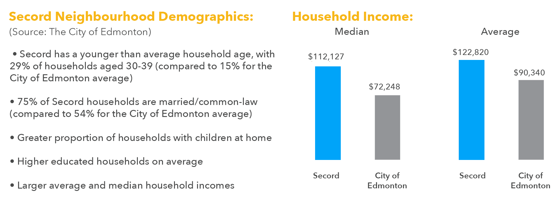 Home to young families and professionals, the Secord neighbourhood in West Edmonton is one of the most sought-after communities in the city. Secord has been planned out to integrate single and multi-family housing with the natural forests, creating a walkable community.